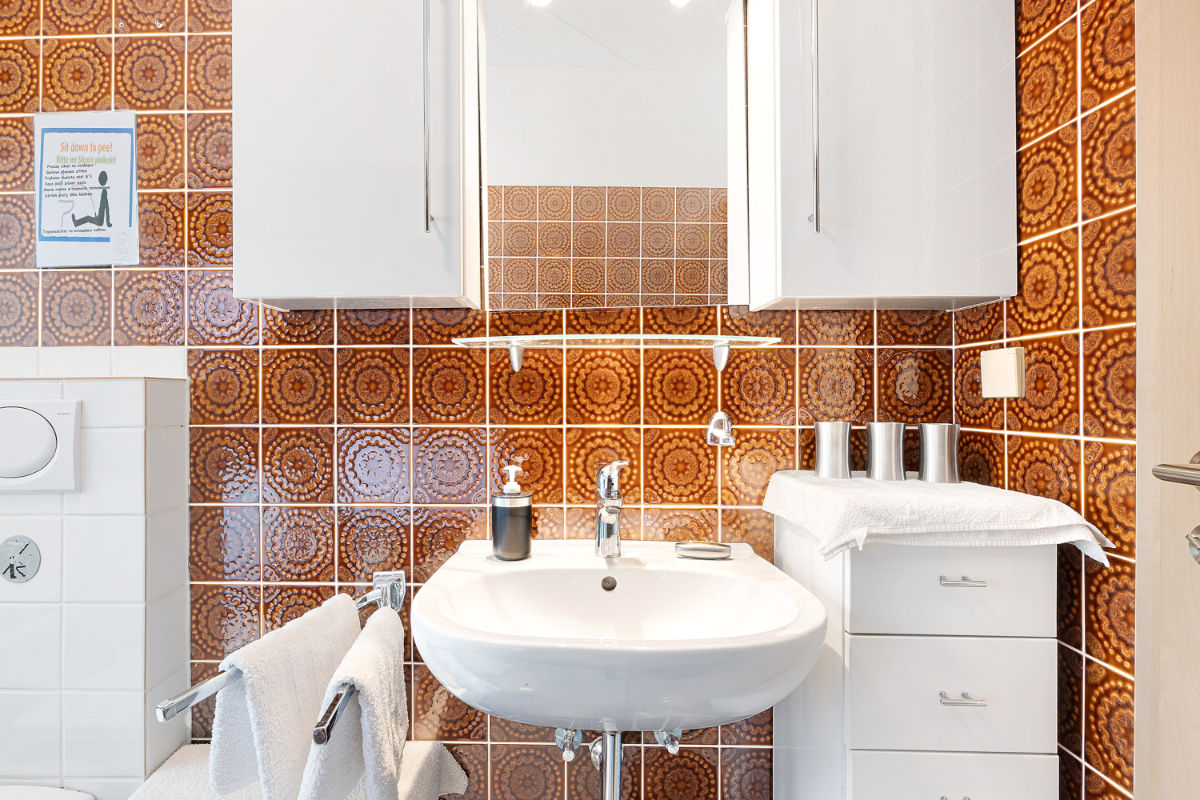 Waschmaschine und Trockner und eine private Sauna stehen in Abstimmung mit anderen Gästen im Souterrain zur Verfügung.