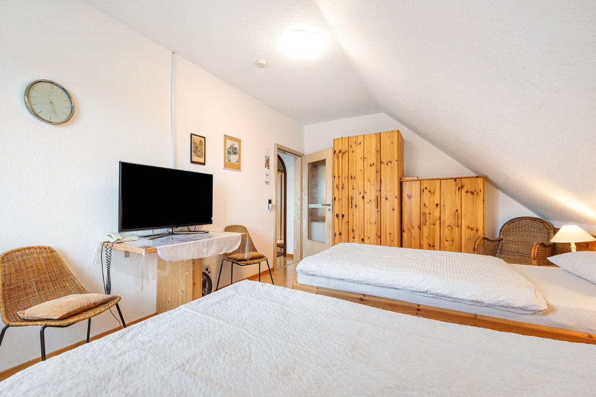 Zusätzlich bieten beide Zimmer Fernseher und Arbeitsplatz für Home-Office.